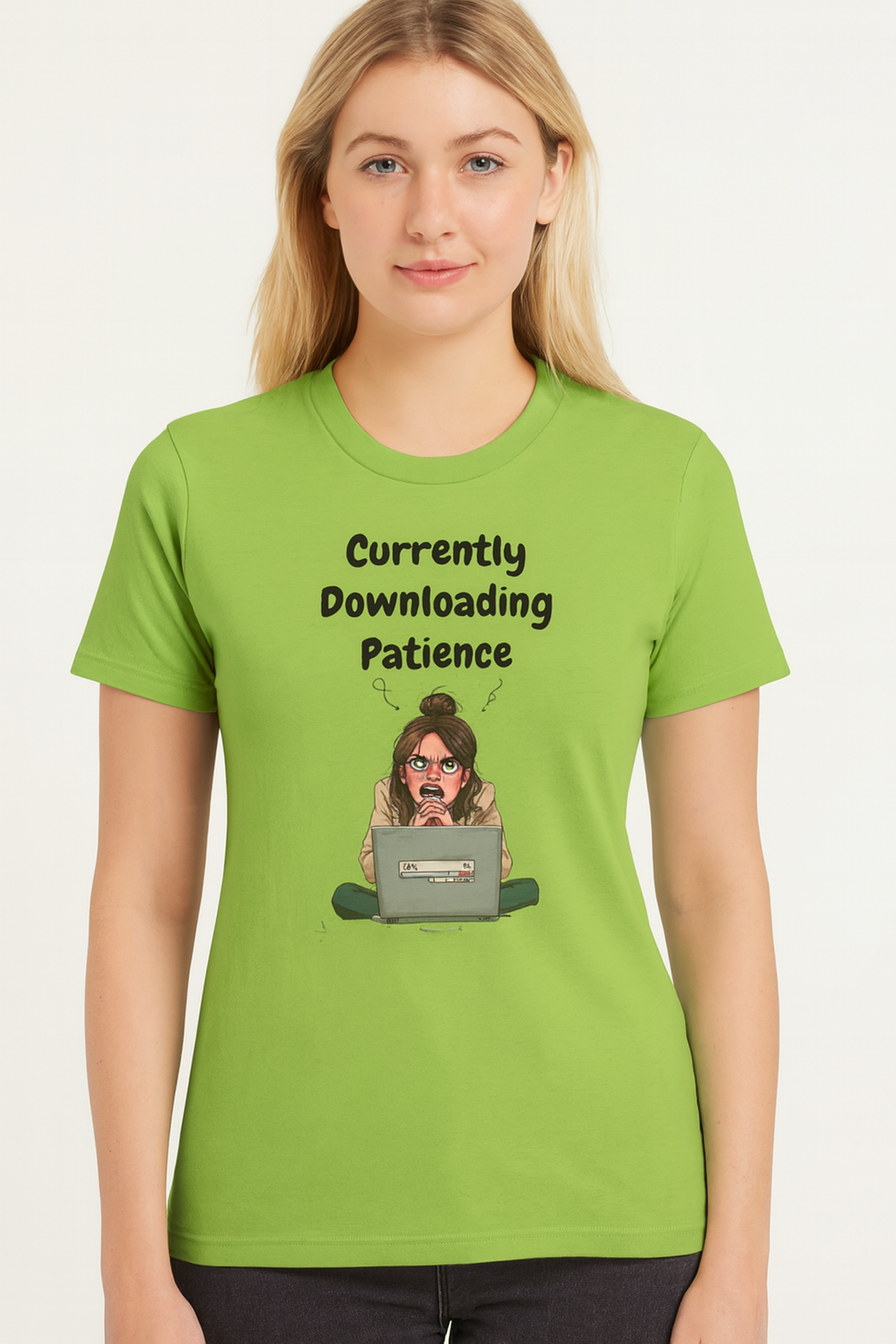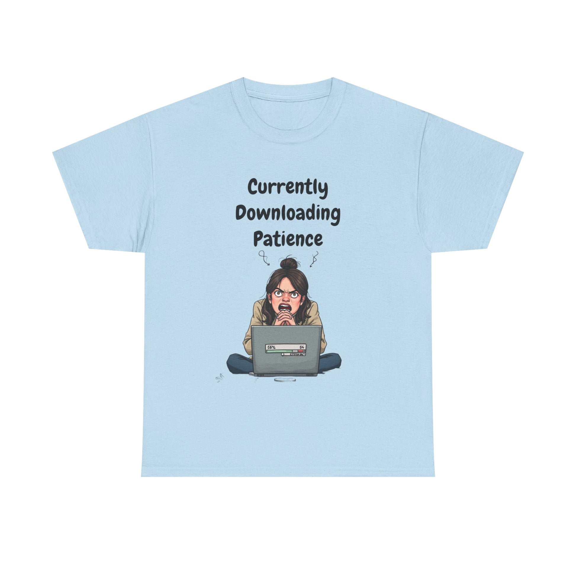Featuring original artwork of a furious, frazzled woman watching her screen crawl past 64%, this shirt is the perfect gift for anyone who's ever screamed at a slow loading bar (aka everyone).