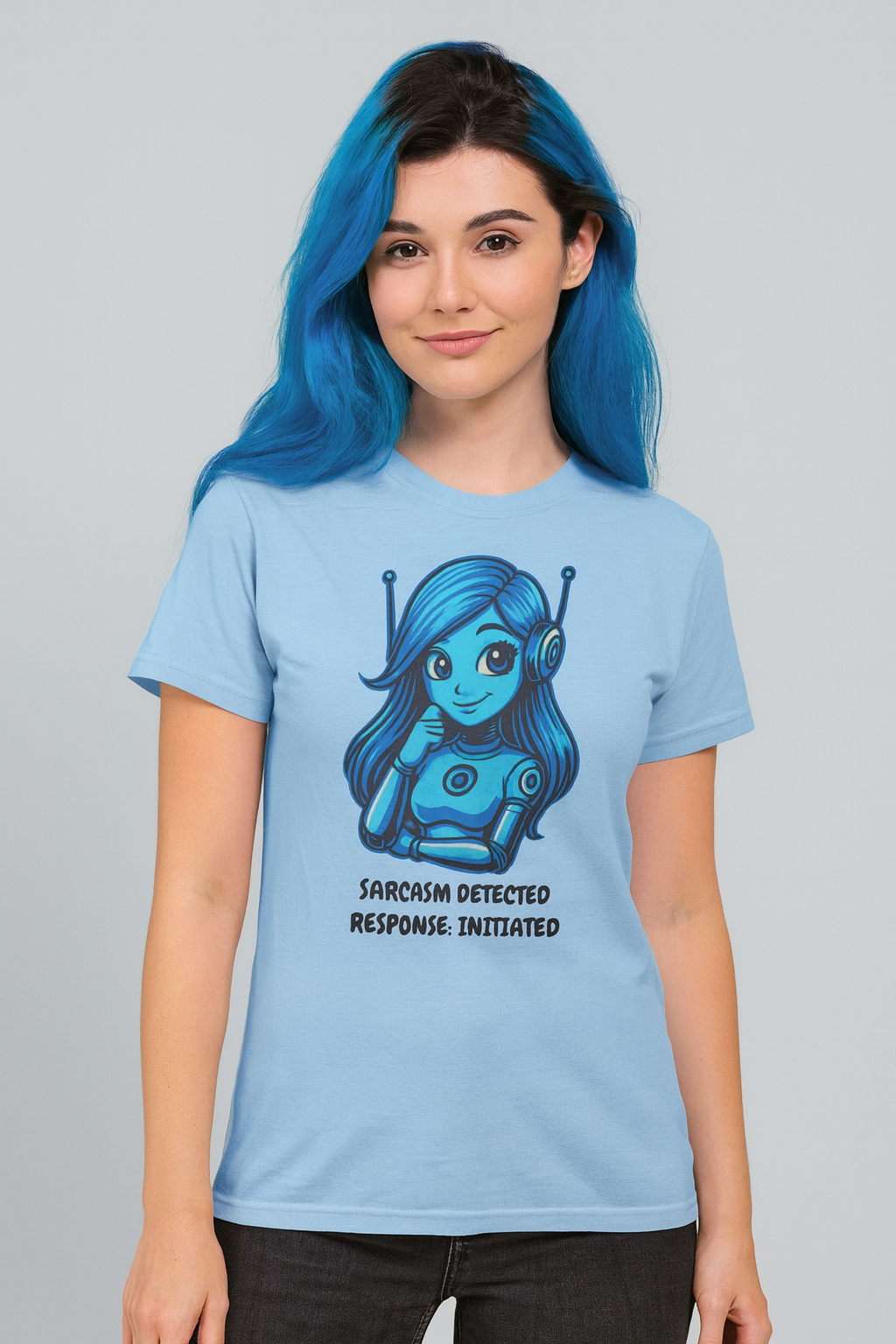 Activate your sass mode with this clever “Sarcasm Detected. Response: Enabled.” tee! Featuring our fan-favorite robot girl Chatboxdette with her signature side-eye and futuristic flair, this shirt is a must-have for anyone fluent in sarcasm and fluent in code.