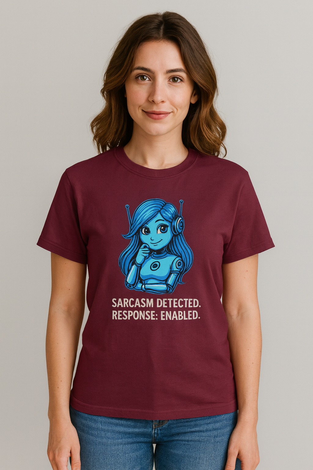 Activate your sass mode with this clever “Sarcasm Detected. Response: Enabled.” tee! Featuring our fan-favorite robot girl Chatboxdette with her signature side-eye and futuristic flair, this shirt is a must-have for anyone fluent in sarcasm and fluent in code.