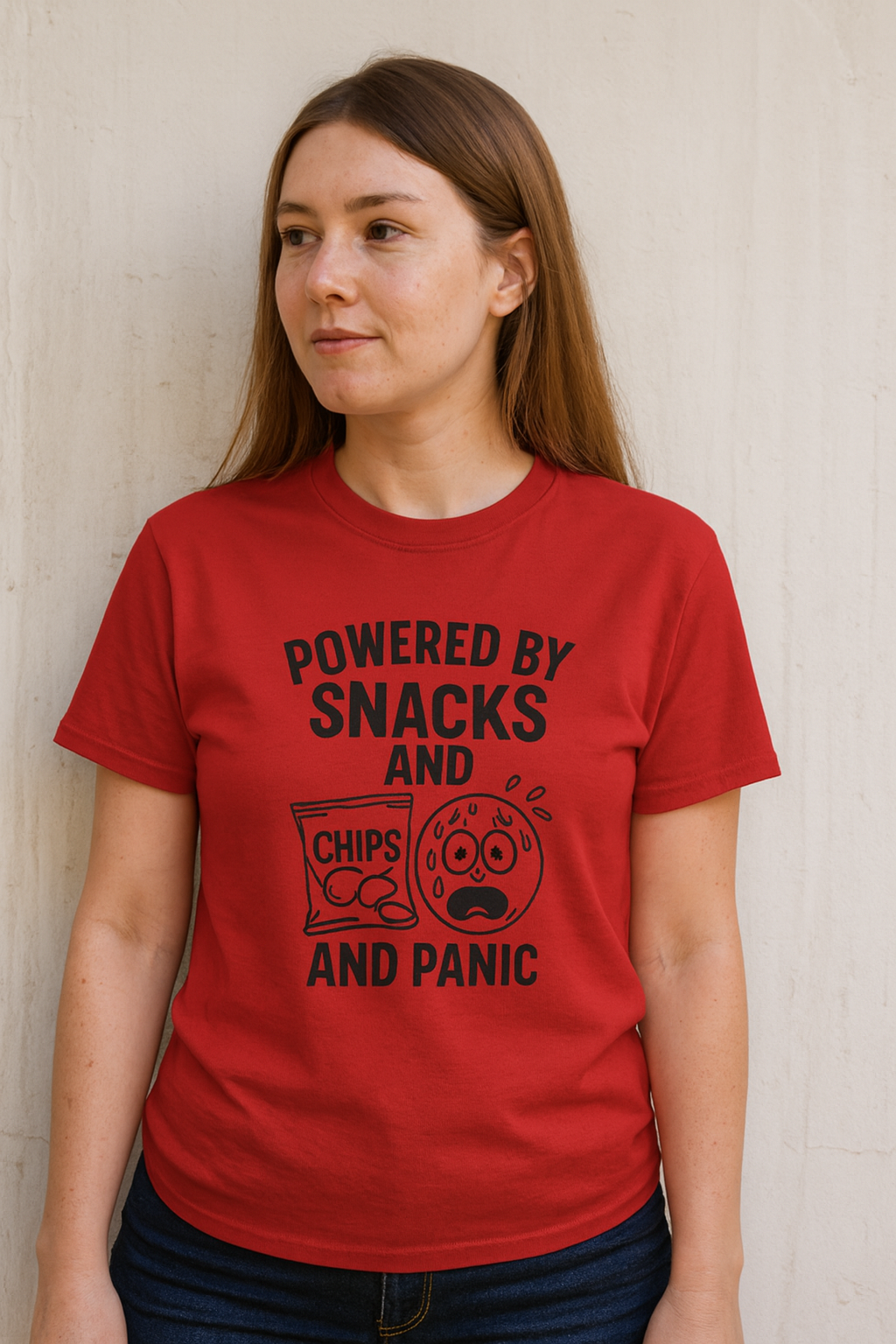 Snacks & Panic Tee | Funny AI T-Shirt for Gamers & Coders